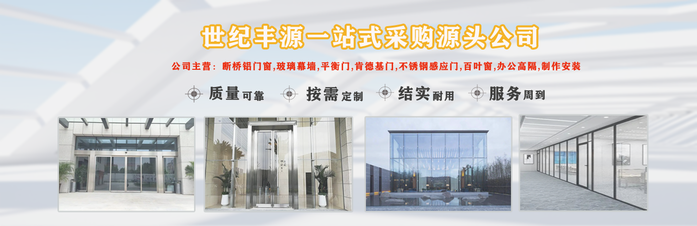 天津世紀豐源門窗有限公司從事斷橋鋁門窗,玻璃幕墻,平衡門,肯德基門,不銹鋼感應門,百葉窗,辦公高隔,制作安裝一站式訂制生產及配套服務等。 公司自成立以來,始終堅持以人才為本、誠信立業的經營原則,薈萃業界精英,成熟的技術、管理方法及企業經驗與國內企業的具體實際相結合,為企業供給各個方面的解決方案,使企業在激烈的市場競爭中始終堅持競爭力,實現企業快速、穩定地發展。 質量好、服務好、才能信譽好,公司已在諸多領域取得輝煌成績,愿意成為您可信賴的長期合作伙伴。 讓我們攜手同行,共同實現“讓普通老百姓都用得上高端門窗”...